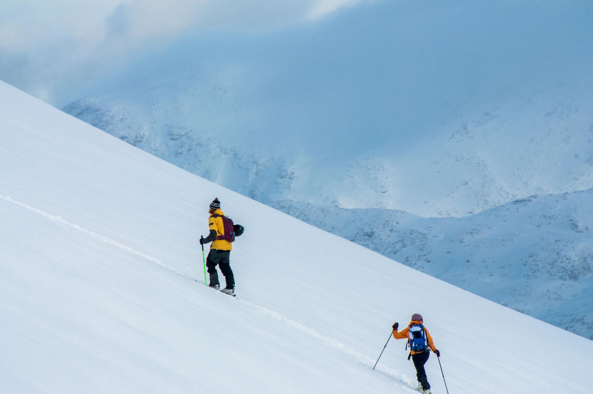 - toppturski og binding med gåfunksjon. Alternativt telemarkski, splitboard, og/eller truger.